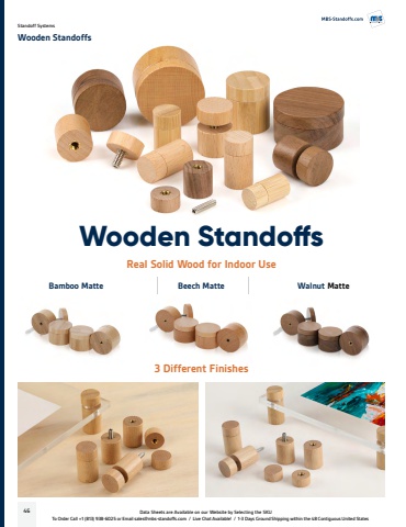 46 Data Sheets are Available on our Website by Selecting the SKUTo Order Call +1 (813) 938-6025 or Email sales@mbs-standoffs.com / Live Chat Available! / 1-3 Days Ground Shipping within the 48 Contiguous United StatesStandoff SystemsWooden StandoffsBamboo Matte Beech Matte Walnut MatteReal Solid Wood for Indoor UseWooden Standoffs3 Different Finishes